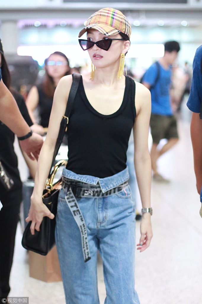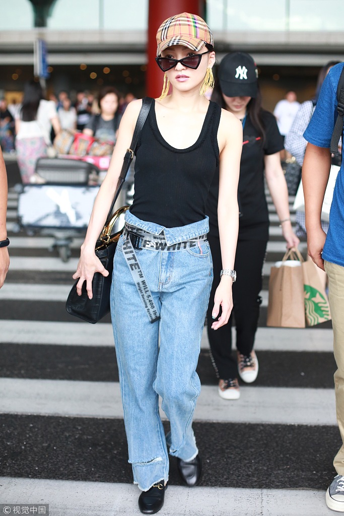 近日有媒体曝光一组张韶涵在机场的照片,照片中张韶涵身穿黑色背心,高腰牛仔裤好身材一览无余,金属色的流苏耳环搭配欧美复古眼镜简直潮范十足。这婀娜的身材完全看不出她已经36岁了啊。