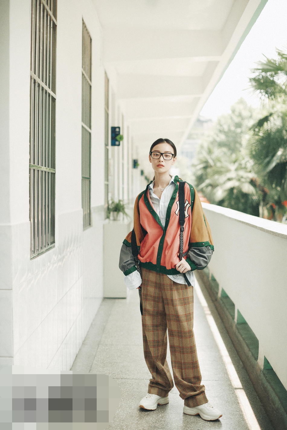 倪妮自身的颜值也是很高的,站在学校班级前面,颇有大姐大的风范,在当时肯定是不可多得的校花级别的人物了。嘻哈风格,配上黑框眼镜,学生的气场倪妮也是全然能够掌握。