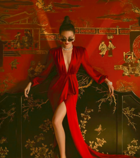 其中一张写真中,倪妮以性感红色为核心,休闲装扮为外心进行了大胆的动作表演,骑跨在行李箱上的动作大胆又火辣,黑色墨镜彰显了独特的霸气,整体浑然天成给人以震撼和美的享受,这也是开门一炮,为的就是抓住眼球,博热度。
