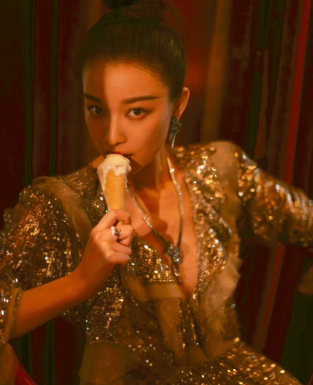 而后则是金色时装,金色其实是一种很难驾驭的颜色,颜值扛不住则太土太酸不尽人意,也只有倪妮身穿金色礼裙,用小舌头舔着冰淇淋还能够将性感大胆演义。深V的设计是一大卖点,既代表着边界,也代表着绝对领域。
