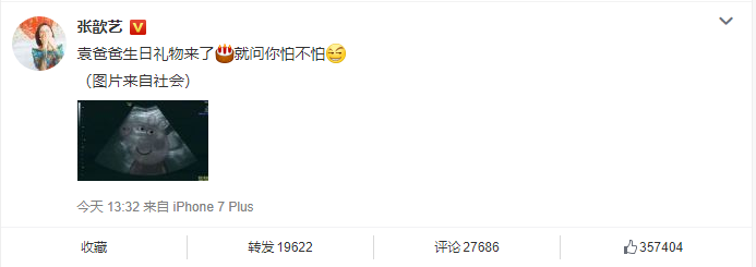 秋天一直都是一个丰收的季节,很多美好的事情都在这个季节发生。在娱乐圈中也是如此,经历了八月份的各种分手之后,还未到九月,娱乐圈的喜事就一桩接一桩的传出来了。8月23日,袁弘的老婆张歆艺在微博宣布,自己怀孕了。并且还俏皮喊话袁弘“生日礼物来了,就问你怕不怕”。