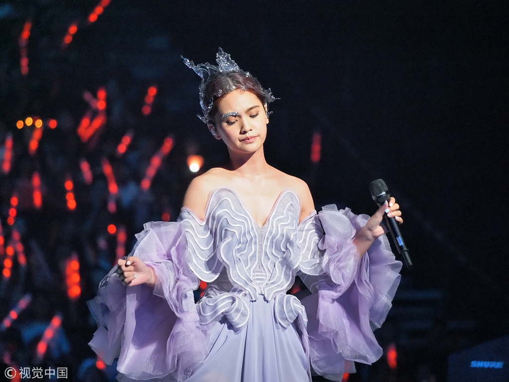 这次的演唱会也是杨丞琳在北京的首次演唱,从媒体爆出的另一组照片看,杨丞琳的百变造型更是美出天际,照片中的杨丞琳一身连衣裙仙气十足,露肩紫色纱裙使整体看着飘逸灵动,浅紫色也让肤色显得白净,有种仙女下凡的感觉。