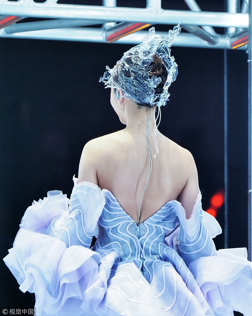 从照片看杨丞琳这次演唱会头部的造型也是相当惊艳的,水滴式的设计,俏皮的银色贴眉更有种画龙点睛的感觉,既显得元气满满,又不失小女人的可爱。