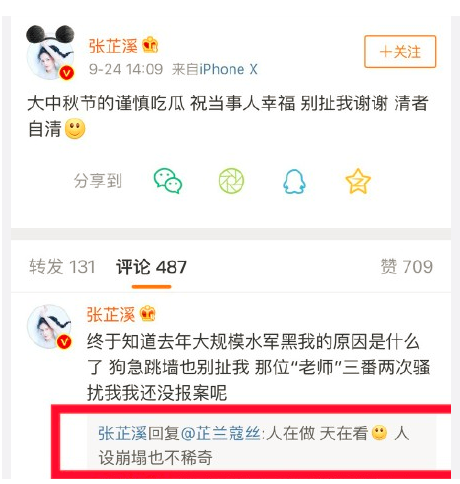有不少网友认为,这是张芷溪故意借助中秋节的热点和吴秀波的事情蹭热点,给自己加戏。迄今为止,大家只是在怀疑吴秀波出现了绯闻,但是没有任何一个人直接指向张芷溪。可能是因为自己的名气不大,所以心急火燎的借助这个机会给自己一点知名度,所以断定张芷溪是一个戏精。