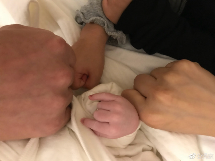 9月24日早上九点钟,吴京在微博发文:“无虑同学闪亮登场!母子平安!感恩!祝大家中秋快乐!”并且配上了一张照片。从照片中可以看出,吴京、谢楠、吴京的大儿子无所谓和新出生的宝宝“无虑”,四个人紧紧握着拳头,看起来非常幸福。