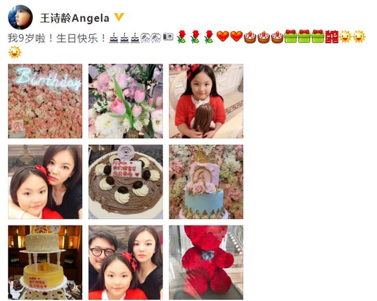 而就在今天,作为星儿代王岳伦与李湘的女儿王诗龄迎来了9岁的生日,小公主王诗龄通过社交平台发布了一组照片并说道:“我九岁啦!生日快乐”,九宫格的照片中,有王诗龄身穿红色针织毛衫怀里抱着芭比娃娃的照片,还有收到的巨星永生玫瑰花小熊。