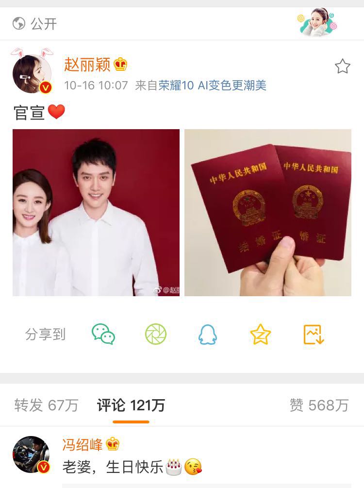 粉丝们一直担心的是冯绍峰太过于花心,会对丽颖不好,但是既然丽颖选择了他,就证明他还是很好的,所以祝福他们啦!