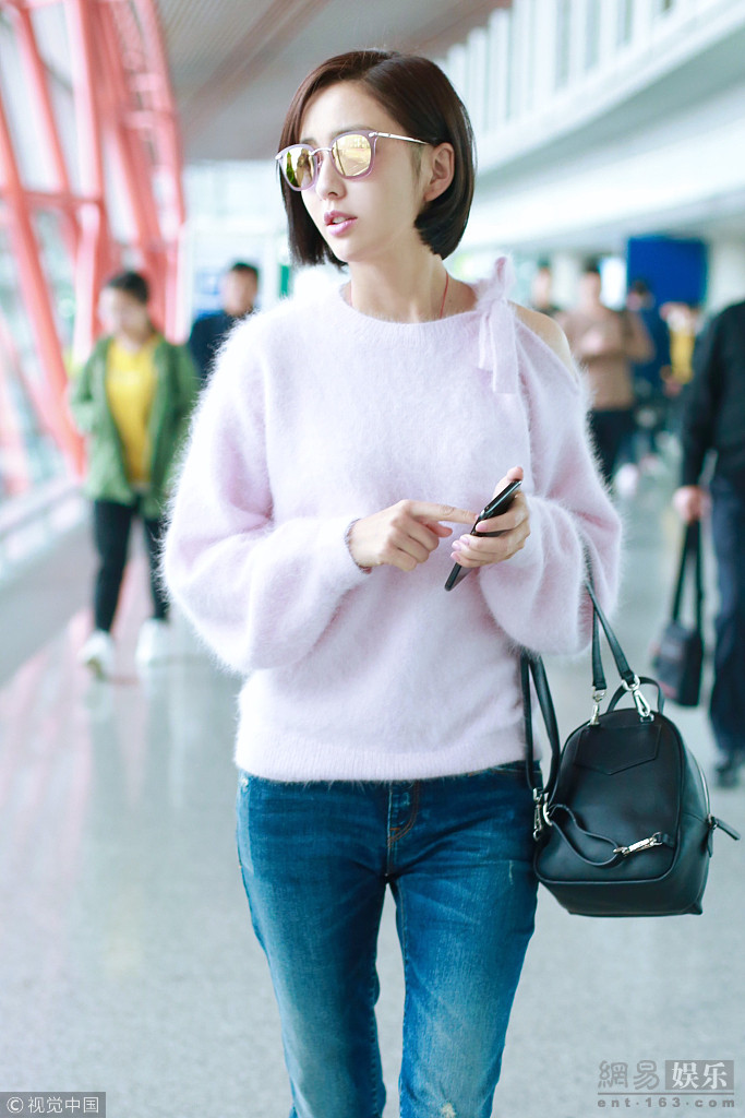 而自从丫丫剪了短发以后,整个人的穿衣风格简直是提升了一个档次,性感撩人美到令人窒息哦!这次媒体爆出的照片中,丫丫在机场也是半漏香肩,怀里抱着一束花,对着镜头浅笑。不过也有网友认为丫丫的眼镜里暴露了拍照的团队,估计是丫丫工作室的。