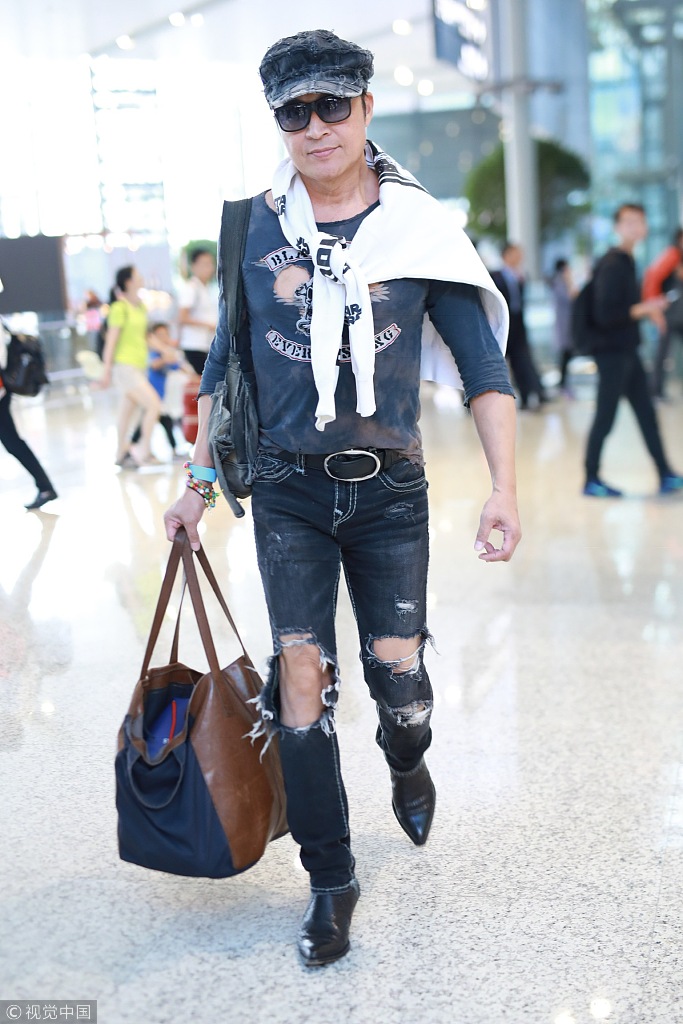 10月21日,有网友爆料,马景涛现身机场,并且发出了一组几张照片。只见马景涛独自一人现身机场,疑似赶赴参加活动,相比之前,马景涛身材明显的发福了,当然亮点不是身材,而是他的一身衣着打扮。手提棕色真皮包,头戴新款鸭舌帽,肩上搭着花围巾,身上穿着破洞服,尤其是裤子,直接从小腿破到了膝盖以上。