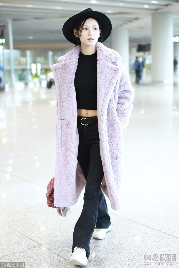 照片中张馨予穿着黑色的打底衫,不过似乎看着并不保暖,纤细的肚子出来,显得十分性感。下身则是一条简单的黑色裤子。穿着浅紫色的毛绒大衣,但是敞开着,不知道是不是因为北京的天气不是很冷。虽然很多明星都比较喜欢炫“腹”,但是一般在冬天不管是明星还是普通的女性都喜欢把自己身体包裹的严实。