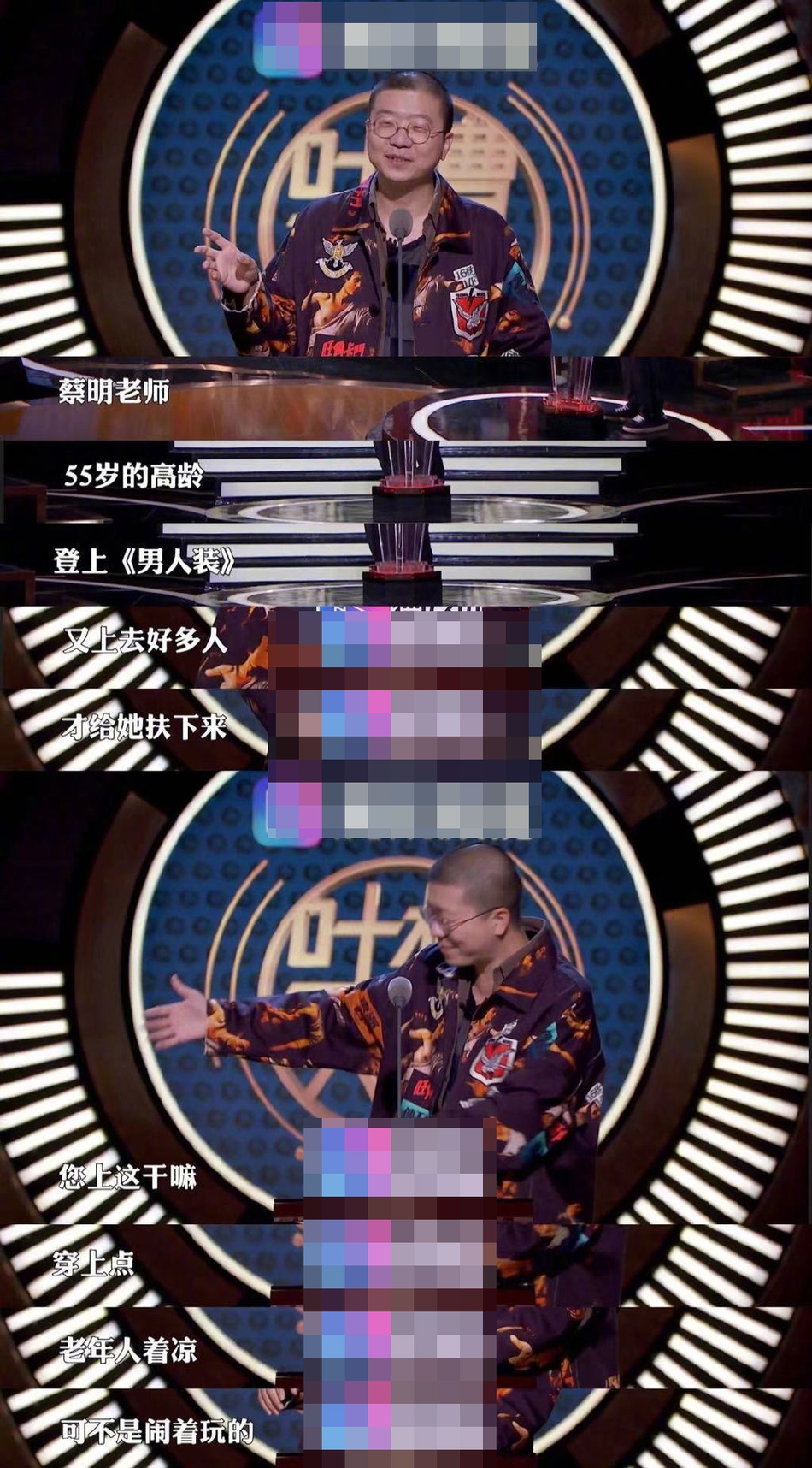 蔡明最近在上了很火的《吐槽大会》,在节目中被李诞的吐槽惹的笑个不停。不过这次李诞更是diss起蔡明之前是演老太太,现在变成了真老太太,李诞更戏称蔡明55岁登上了《男人装》的封面“老人家多穿点衣服小心着凉”惹的蔡明哈哈大笑。