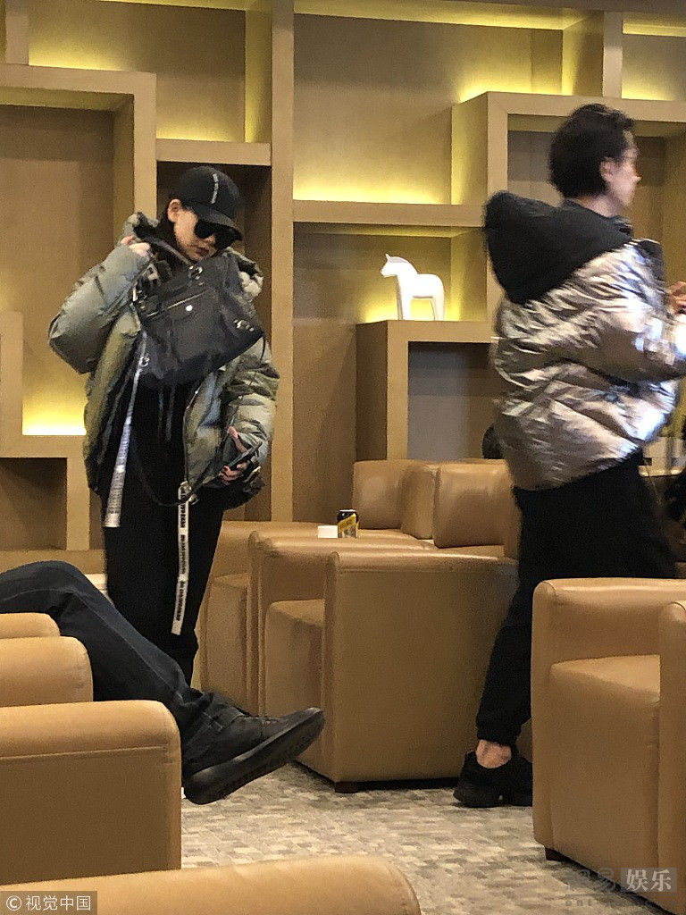 戚薇与老公李承铉身穿款羽绒服,虽然照片比价模糊,但还是可以一眼认出来就是她。戚薇身穿墨绿色羽绒服,休闲运动裤,戴着鸭舌帽。而李承铉则hi一件银白色的羽绒服,看起来超级亮眼的。估计是比较着急,两个人进入贵宾室后李承铉帮戚薇买了杯饮料,喝完后两人就匆匆离开了。