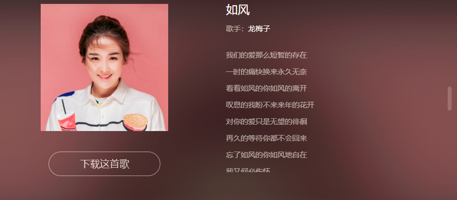 在背景音乐之下,更是给人带来了全然不同的冲击力,仅仅只听一遍,就被深深的折服了。好音乐不少,好歌手也很多,当一首好听的歌曲被一个实力派的歌手唱出来,能够走红必然是一个定势了。听完这首《如风》,大家能给龙梅子打多少分呢?