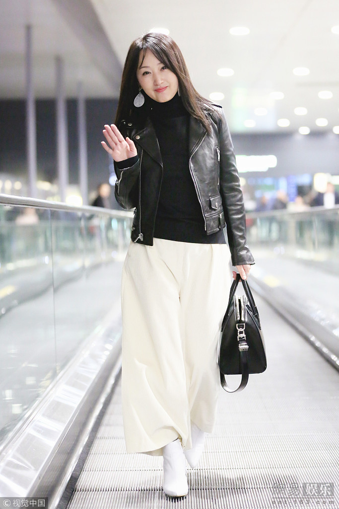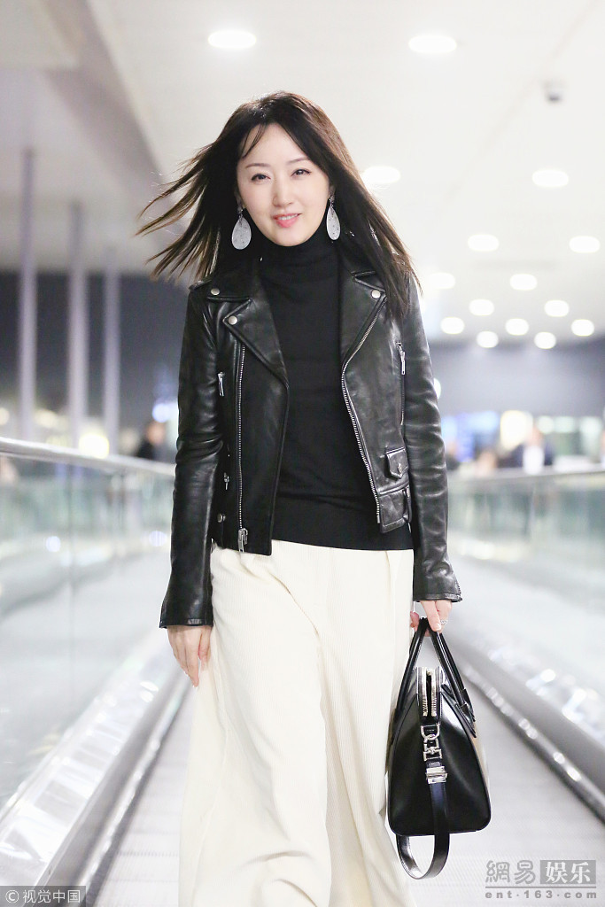 如今已经47岁的杨钰莹完全看不出脸上有一丝这个年龄女人该有的肌肤,从最近网友爆出的机场照中,杨钰莹身穿黑色短款皮衣,内搭一件黑色的高领毛衫,浅白色的阔腿裤,手中提着一款与整体搭配很相称的黑色手提包,显得文气十足。一如过往,杨钰莹还是长发披肩,看到有人在拍照的她,面对镜头招手露出甜美的微笑。
