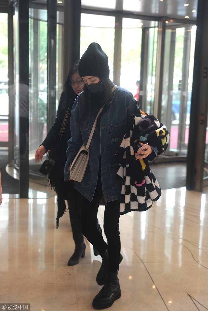 这次的大幂幂现身某酒店,不知道是在这里住宿呢还是有其他活动,照片中,大幂幂整个人被宽大的牛仔外套包裹的严实,胳膊上还搭着一件看格子外套,起来像是一件毛大衣。可能是外面天冷的缘故。不过大幂幂并没有把衣服给助理,反而是自己抱着,看起来低调十足。