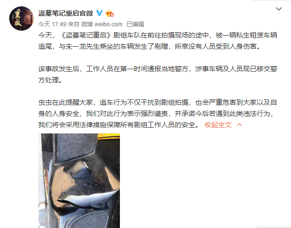 12月18日,盗墓笔记官微发布消息,朱一龙在前往现场的时候,车辆被私生饭租赁的汽车追尾,幸亏车上所有人员没有受到任何的伤害。而关于私生饭的行为,也引起了网友的热议。虽然对于这件事情,朱一龙本人并没有回应,但是粉丝早已义愤填膺,坐不住了。