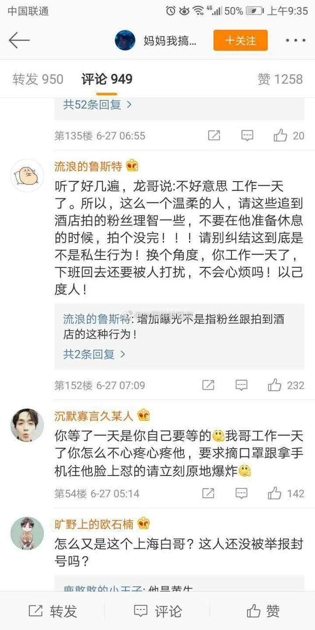 私生饭们的反应是图中这样的。好像还在觊觎着再次摸一摸朱一龙的手?这样真的很有意思吗?
