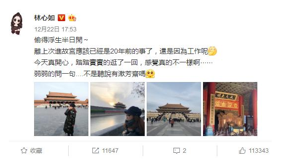 林心如重游故宫寻觅“漱芳斋”,一张照片勾起满满回忆