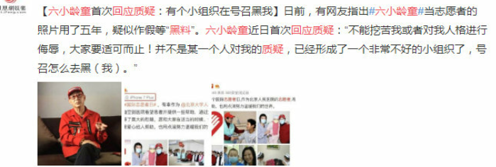 有网友爆出六小龄童公益造假,微博发的公益照片与五年前的一样。随后六小龄童本人便做出回应“不能挖苦我或者对我的人格进行侮辱,大家要适可而止!”,可是网友们似乎并不买账。
