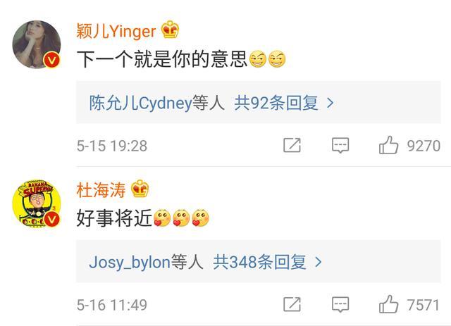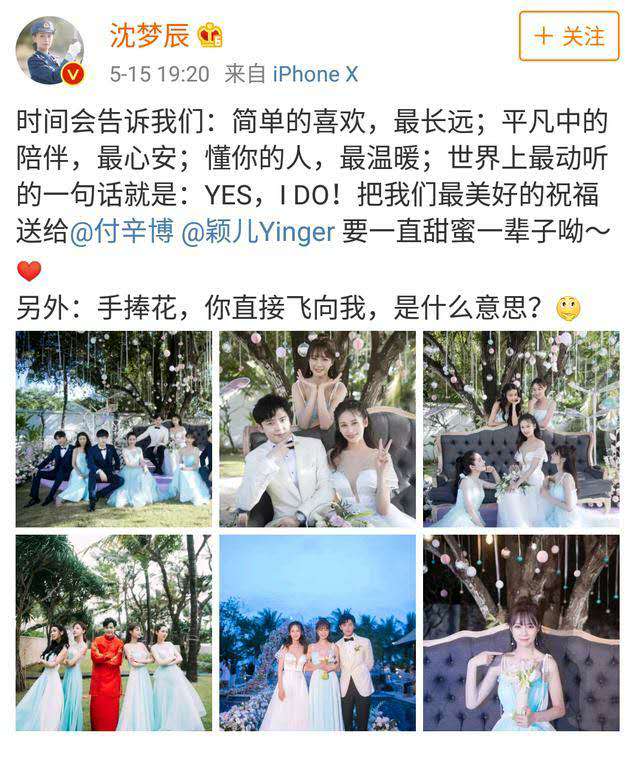 两人的好友颖儿付辛博的婚礼上,沈梦辰更是幸运的接到了颖儿的捧花。随后沈梦辰发微博称,最简单的喜欢最长远,平凡的陪伴最心安,懂你的人最温暖世界上最动人的话就是:YES,I,DO,手捧花直接飞向了我。而很快杜海涛便评论了沈梦辰的微博:好事将近!