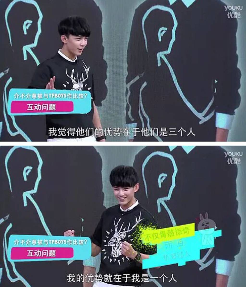 随手翻了翻往日的采访,我笑了,原来三石弟弟增长的不光是年岁和个子,还有更多的东西,情商。在问到与TF组合做比较的问题上就凸显出来。