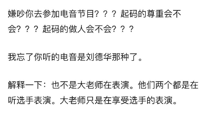 希望未来节目组和观众都能妥善处理的情感。顺利完成节目,也客气对待每一位导师。你们觉得呢?