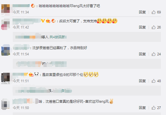 对此,无意间被推上热搜的邓伦本尊更是做出可爱的回应称“叔叔我会继续坚持邓leng风的”。之后邓伦更是与沈梦辰和杜海涛进行了互关。沈梦辰还PO出了一组沈爸爸与邓伦穿衣风格的照片,“春风秋风四季风,全都不如邓leng风”。看来沈爸爸的四季风确实都是实力模仿邓伦风啊!