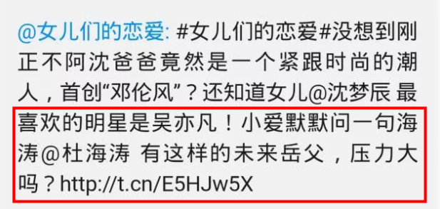 不少人看了后纷纷留言,有人称:叔叔这么喜欢“邓leng风”不喜欢“海涛风”,就不担心未来女婿吃醋吗?也有网友艾特了杜海涛,戏称:有这样的岳父,未来会不会压力大呢?