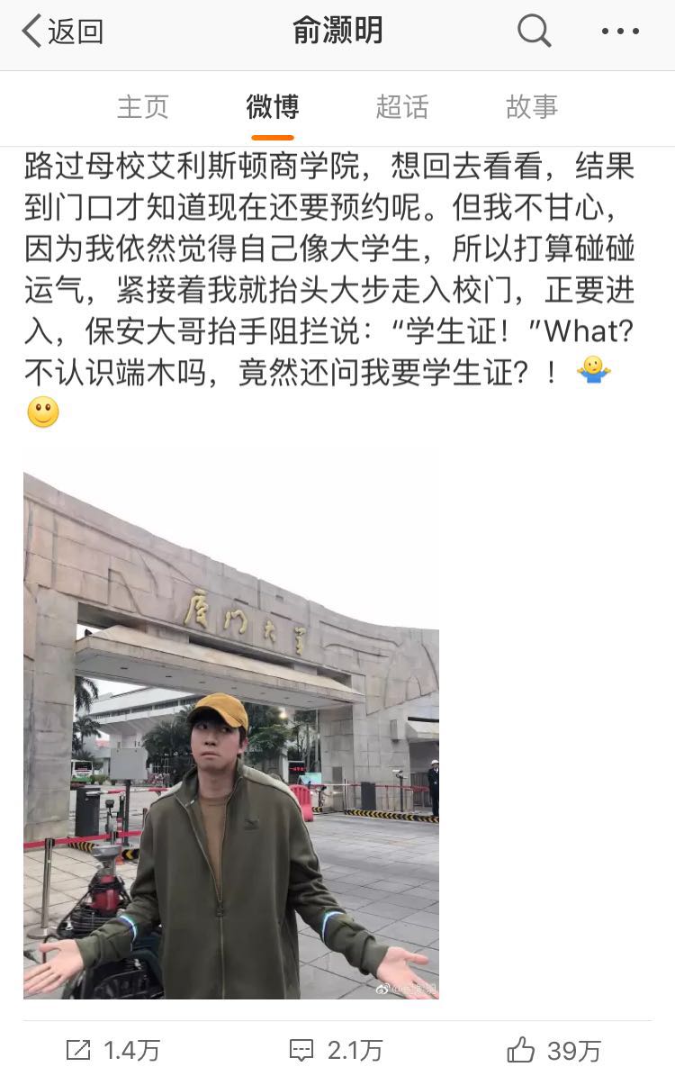 每个人都是有母校情怀的,明星也不例外啊,这不,前几天俞灏明就在微博上晒出了与母校合影的照片。