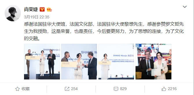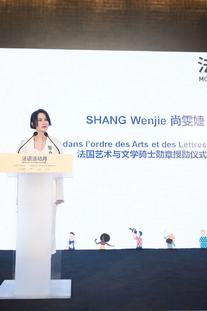 要知道获得这项殊荣的中国人没有几个,而且一般都是梁朝伟,张艺谋这样大佬级别的人物,所以尚雯婕能获得这项荣誉不但是对她成绩的肯定,也是对她所做出的贡献的肯定。台上的尚雯婕举止优雅,穿着得体大方,十分给中国人长面子。
