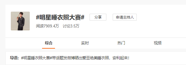 5月30日的微博热搜榜中,几百万网友都在讨论“明星睡衣照大赛”的话题。各家粉丝纷纷po出了自家爱豆的睡衣照,不同的人,不同的状态,不同的角度,给人呈现出不同的美艳或者帅气。