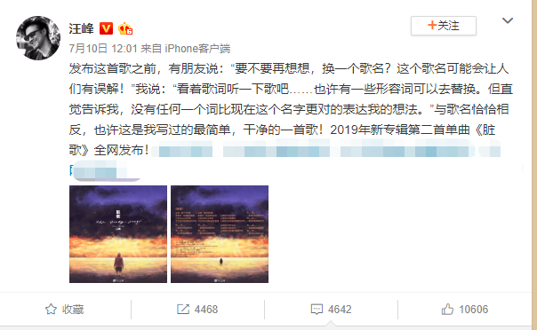 习惯在朔风大漠的郊野用最大的音量听汪峰的歌曲,声音的张弛有度和情绪的大起大落之中,在汪峰的狂野声线里,总能给人一种豪情万丈的气魄。而当这首《脏歌》出现在深夜里的歌单中时,突然略显不适,淡雅而又缓慢的曲调,拉长了人的思绪。