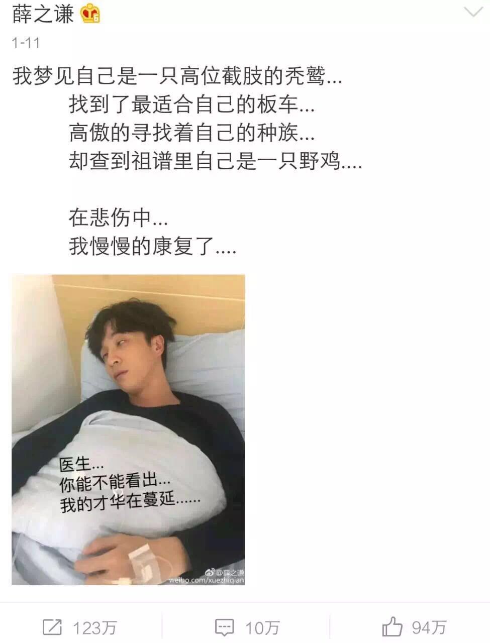 薛之谦自己也曾在节目里坦言:“我心理不健康的,我从头到尾就没有觉得我心理健康过,要不然我就写不出这些情歌,要不然我就不会抑郁。”字里行间可见其对于音乐的痴迷和坚持,所幸天公浩荡,给了他和我们一个互相认识的机会,不然若使老薛怀才不遇,我等不知损失凡几!