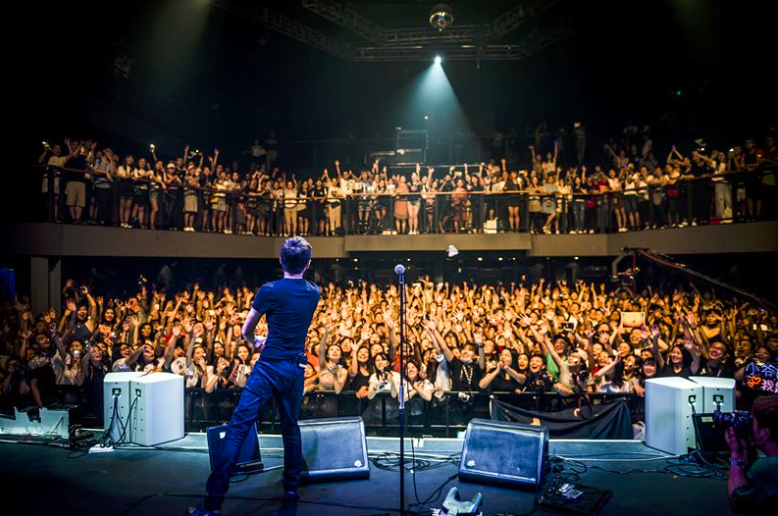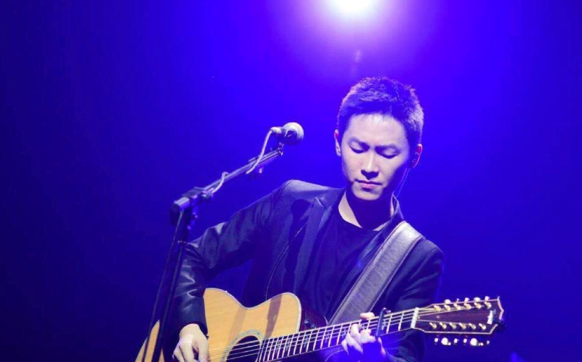 他一身飒黑,施施然的站在台上,歉一声久等,就这样温和从容的娓娓道来。抱着吉他老老实实的哼唱,执拗热烈的把自己紧密揉入进音乐。