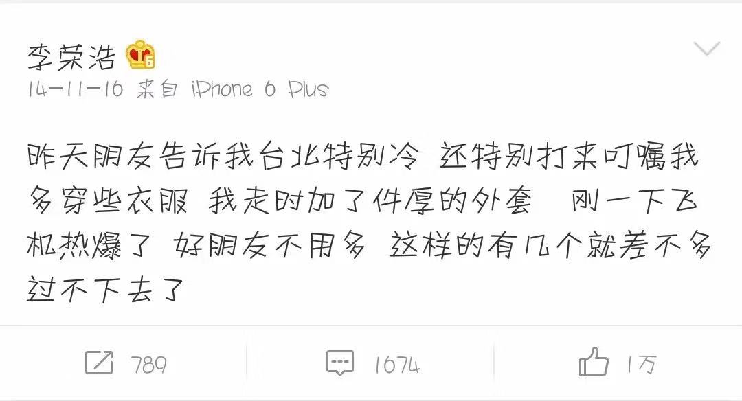 初次认识李荣浩,相信你是因为他的歌曲,他饱含深情的,充满沧桑的,作品。可当你认识这个人久了,就会发现,明明是唱歌的李荣浩,却是一个行走的段子手,让人一看到他,就充满欢乐。