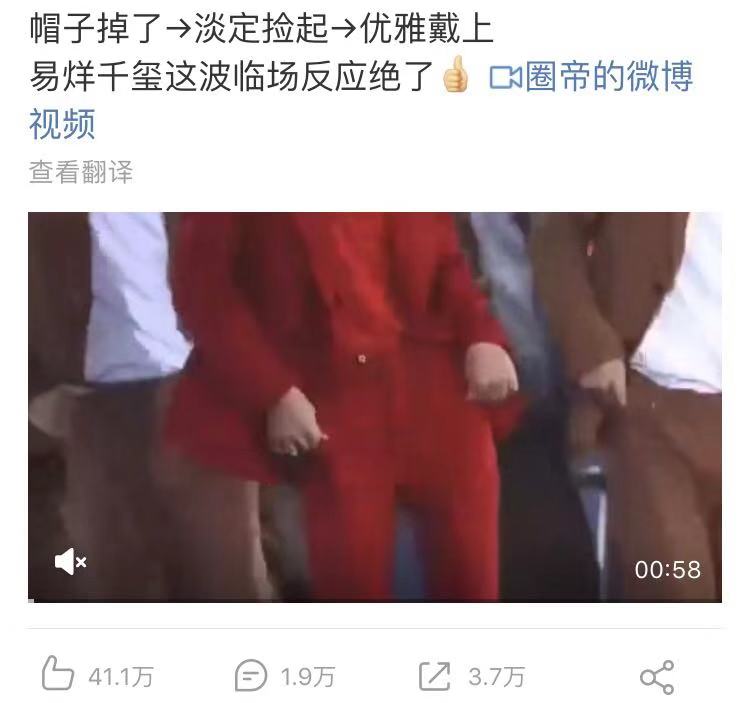 最近他的帽子掉了,上了热搜,很奇怪,为什么帽子掉了也会上热搜,但点开之后才知道,原来是他的临场反应,实在是不像一个小孩。帽子掉了是个意外,而他去灵机一动将剪帽子的动作融入到了舞蹈里。
