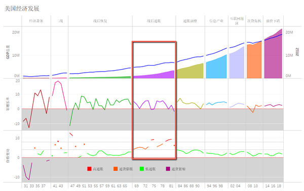 从成长性的角度看,较高的通货膨胀率是美国战后通胀期经济发展波动的主要原因,从均衡性的角度看,美国经济内循环效率的下降成为美国战后经济发展的转折点。虽然,通过财政和货币政策,美国控制住了通货膨胀的水平,但并没有有效解决内循环效率下降导致的均衡性问题,美国经济发展的成长性也逐渐下降。