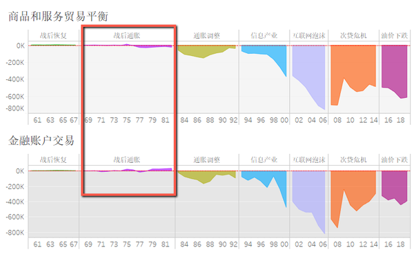 商品和服务贸易以及国际金融帐户交易,是美国经济外循环系统。通过商品和服务贸易,可以带来更低成本的商品和服务,同时向外输出过剩产能。国际金融帐户交易提供了不同的资金需求。