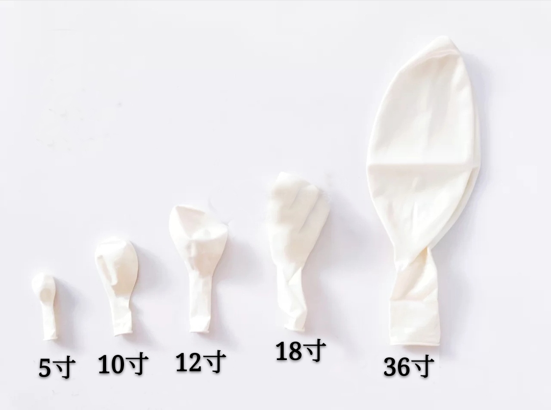 1.气球尺寸从小到大分别有3英寸、5英寸、6英寸、9英寸、10英寸、12英寸、16英寸、18英寸、30英寸、48英寸、60英寸等多种规格尺寸气球。在早期,气球装饰布置从国外引进,所用气球大多使用进口气球布置,进口气球规格尺寸一般以英寸命名,一直沿用到现在。我们一般也简称寸,如10英寸气球可叫10寸球。