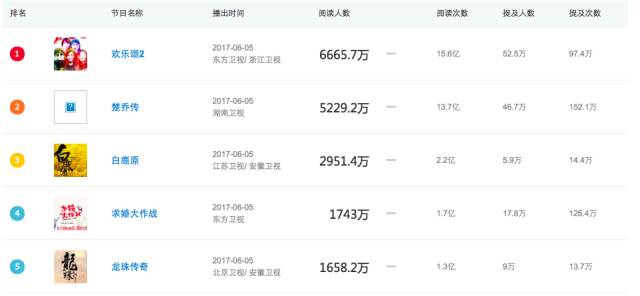 相对而言,微博的用户群体更显年轻,该平台有较强的粉丝效应。在上图所看到的榜单信息中,除《白鹿原》外,无一不是有流量小花、小生撑起话题度的作品,而《白鹿原》能在无流量小花、小生的情形下杀入三甲,实属难得。