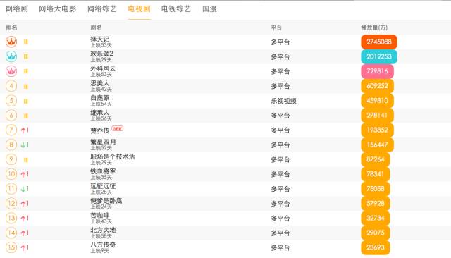2、视频播放量:唯一上榜的网络独家平台播出作品