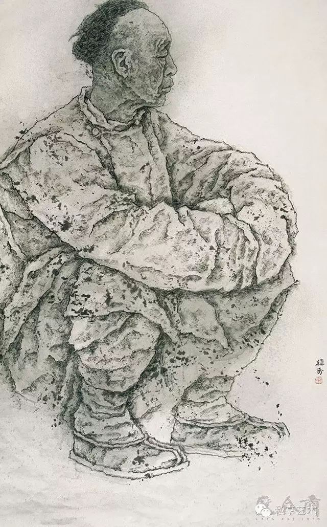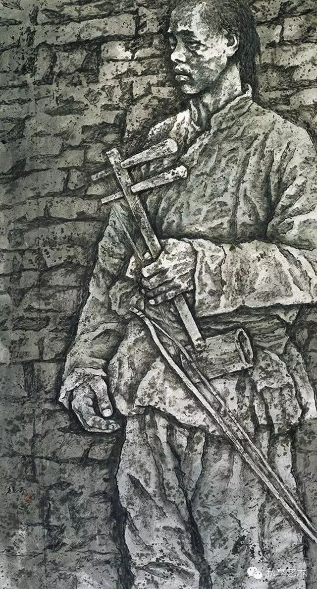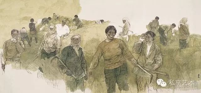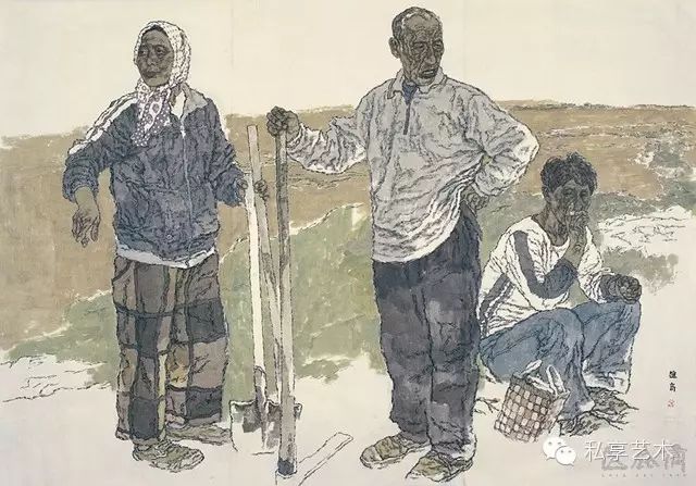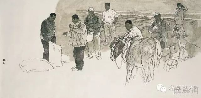 绘画的时候,心态应该是轻松的,你不可能一笔一笔去想,这是“钉头”,这是“鼠尾”,这是“铁线”描……不要把负担放在手上。画家心里想的是要画下对象,一笔不对就再画一笔,错了可以重来……这有什么关系呢?留在绘画上的线条可能不是一笔一笔的去衡量,而用笔的质量,它的恰当之处正是在于对内容的表达上。好的作品,我们相信,它的用笔一定是有质量的。我一直难以理解有些人对作品的批评:画的很感人,但是缺少笔墨味。我说过绘画就是画的,绘画过程始终是修修改改,目的全在于要表达什么。作品完成了,其形式也就出来了,这时候,我们可以把笔墨味道理解为是效果,笔触是在一个环境相互补充相互支撑着的东西,即使一段线,也一定和另一段相关联的。笔墨不是孤立事件,这和文字一样,调整几个字,一句话就成为了另外的内容。