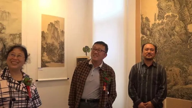 中央美术学院教授、炎黄艺术馆馆长、著名山水画画家崔晓东先生莅临展览开幕式并亲自为“平和画廊”揭幕。