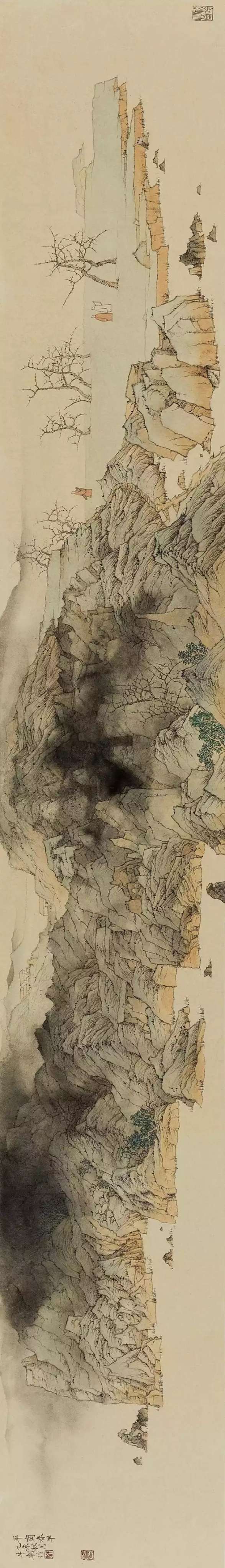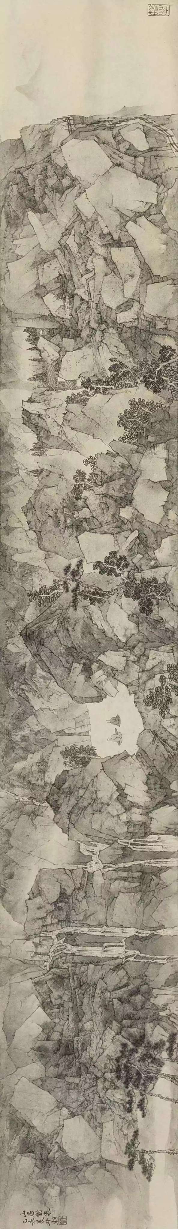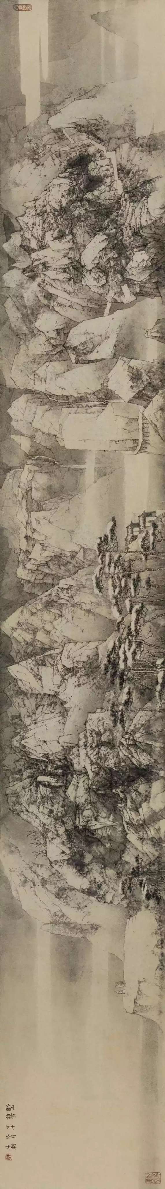各种形制中,己独喜绘手卷。手卷作为中国画的重要表现形式,尤为适合方寸之内、迥以千里之貌的山水境界。万物皆有生命,即便一张白纸,内中亦有生命律动,只是你没有发现或者你没有能力发现而已。事画多年,每每喜欢对着一张窄纸细细琢磨、慢慢寻找,良久不能一笔,画面若混沌世界一般,时有时无、似有似无,有时若云烟过山,境界瞬忽大变,有时若山门洞开,画面依次忿入,一笔而始,万痕复加,山川林木、飞瀑流泉、茅舍小桥渐入画中,己与三五闲人优游其间,不亦悦乎!每成一卷,心欢体愉,感会到一个境界从无到有的过程,图成跋就,收于盒内,归于囊中,此时,若云烟俱散、舟车归去、人鸟皆息,一切归于平寂……