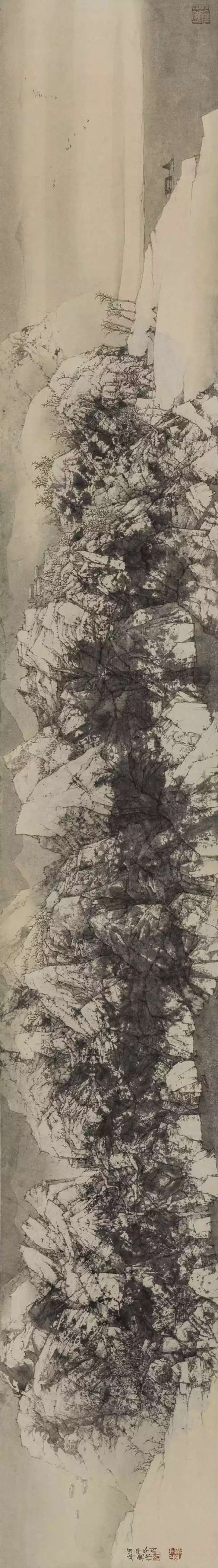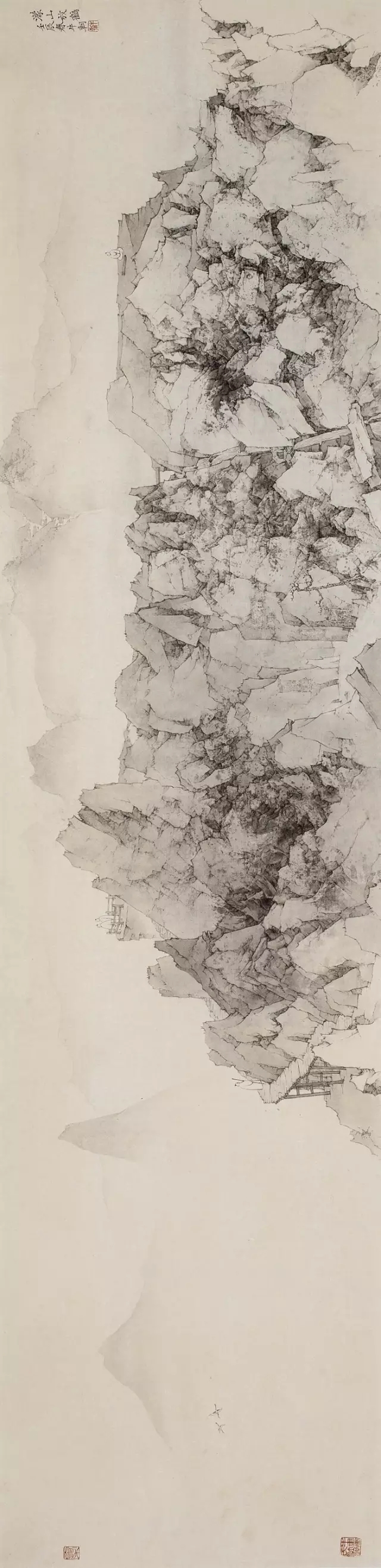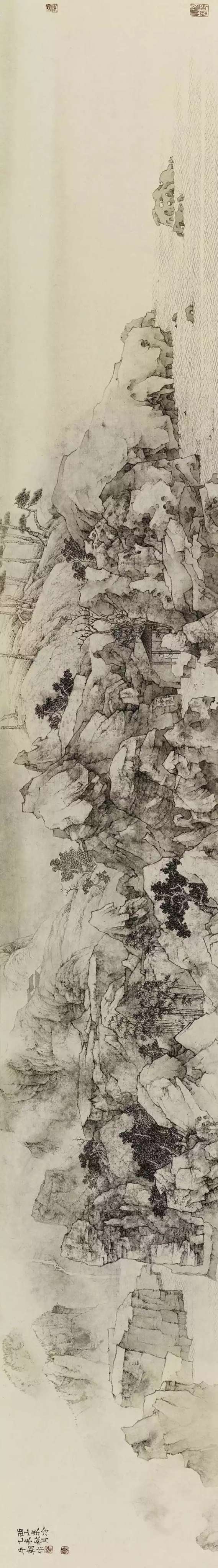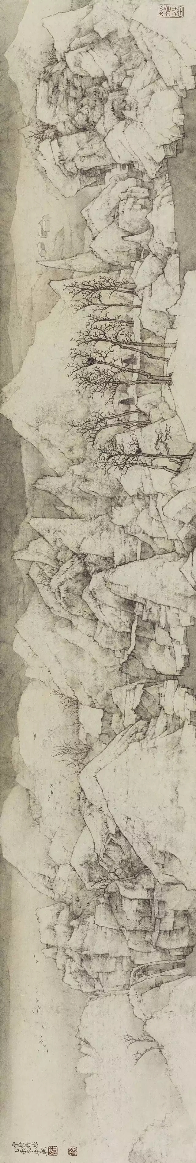 各种形制中,己独喜绘手卷。手卷作为中国画的重要表现形式,尤为适合方寸之内、迥以千里之貌的山水境界。万物皆有生命,即便一张白纸,内中亦有生命律动,只是你没有发现或者你没有能力发现而已。事画多年,每每喜欢对着一张窄纸细细琢磨、慢慢寻找,良久不能一笔,画面若混沌世界一般,时有时无、似有似无,有时若云烟过山,境界瞬忽大变,有时若山门洞开,画面依次忿入,一笔而始,万痕复加,山川林木、飞瀑流泉、茅舍小桥渐入画中,己与三五闲人优游其间,不亦悦乎!每成一卷,心欢体愉,感会到一个境界从无到有的过程,图成跋就,收于盒内,归于囊中,此时,若云烟俱散、舟车归去、人鸟皆息,一切归于平寂……