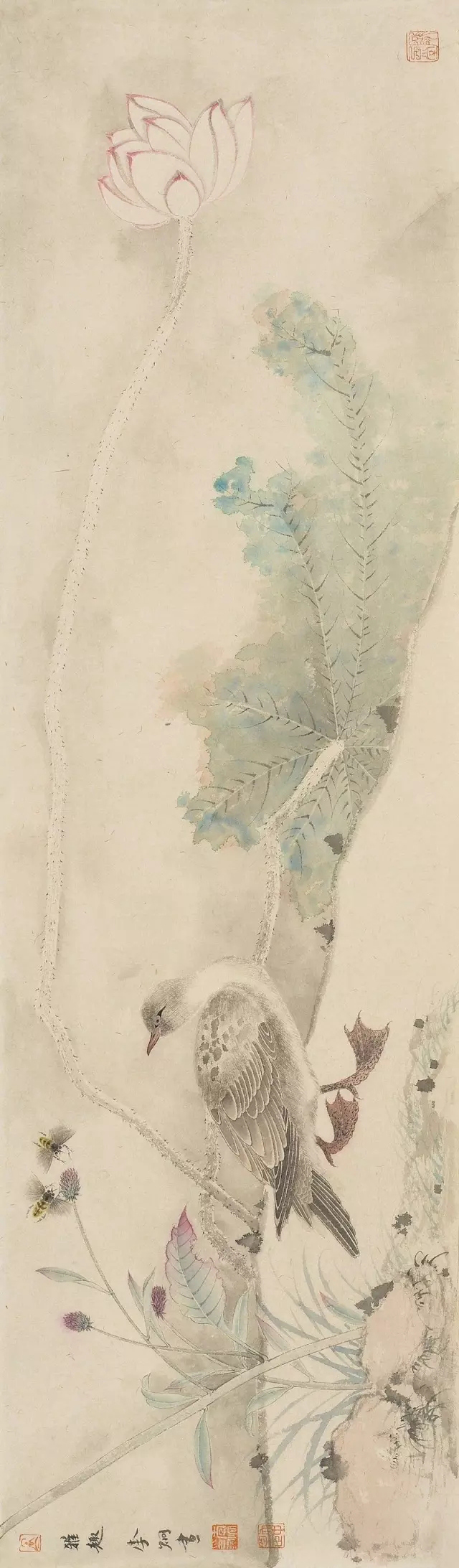 徐上瀛《溪山琴况》云:“抚琴卜静处亦何难,独难于运指之静。”心不静则不清,故绘事之难独难于颖悟之道,近以气用,远以神行。悟之外更应求变,求一生之不断变化,齐白石、徐悲鸿、张大千、潘天寿、李可染等大家一生之中无不求变求发展。王国维说:“古今之成大事业大学问者,必经过三种境界,昨夜西风凋碧树,独上高楼,望尽天涯路,此一境也。衣带渐宽终不悔,为伊消的人憔悴,此二境也。众里寻她千百度,蓦然回首,那人却在灯火阑珊处,此三境也。”三般境界即理想、探索、功成,量变到质变,积跬步行千里,亦是蕴涵其中。