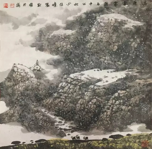 “写意”是对“境”的物化,也是“景”的深入,是在书?胸臆中去求得实与虚中状态的优雅,去增强着图画的趣味性;而“写境”却是将个人的美好愿景,借自然组合的形态去表现出来,是“我”与境融的过程,当“我”化为境中之物时,才能在忘我与超越中去求取理想中的美意,完成境中灵趣的寄寓。因此不管是 “意”与 “境”,在当代具有代表性的画家手中都有着各自的理解及“造境”的绝活,能将自己阅历中的物像感受,塑造成个性化的图画,让平面的图画直通“造境”之美。“造景”是境界之美的物化过程,所以“造景”既要从自然中来,又要往心里边去,还要有美好的感情寄寓。这其中更是要通过“画眼”传达出情思中的感受,表达出个人的人格追求,不然就会让“造景”难以升华为境界美,并在虚构中成为失真无味的空动之图。