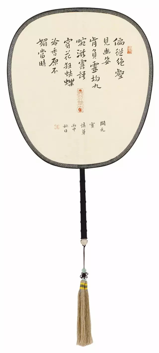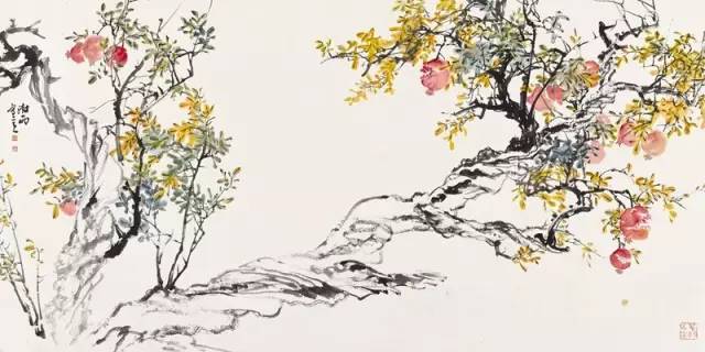 “一雨成秋”是两个人的合作。谈到合作,必然是共同创作,而又互相补益。这些作品历时较长,但以近期创作为主,有的是画配诗书,有的是诗书配画。我连续三年在峄城榴园写生,描写百年古树、骄阳黄叶、细雨红榴。每年写生归来李一老师都会观看我的画,提意见与建议,有时欣然题诗。如这次合作的主题作品,李一老师以章草题诗:“笑破霜皮万颗攒,繁枝苍干耐秋寒。写来匹练知何似,红玛瑙堆白玉盘”。这一段时间的合作,我与李一老师全力投入,专注创作。李一老师曾写诗:“风雨十年路,乡园一点灯。萦怀千万绪,老屋旧青藤。”我以《青灯有味似儿时》为题写灯蛾,以画相配。我写宫扇《芭蕉》,李一老师则以行书对题:“漫将幽意种芭蕉,夏月春云总寂寥。一自秋声随夜入,不风不雨也潇潇。”……时间就在这诗情画意的潜心经营中度过了,我感觉沉醉其中,也成长进步了不少。