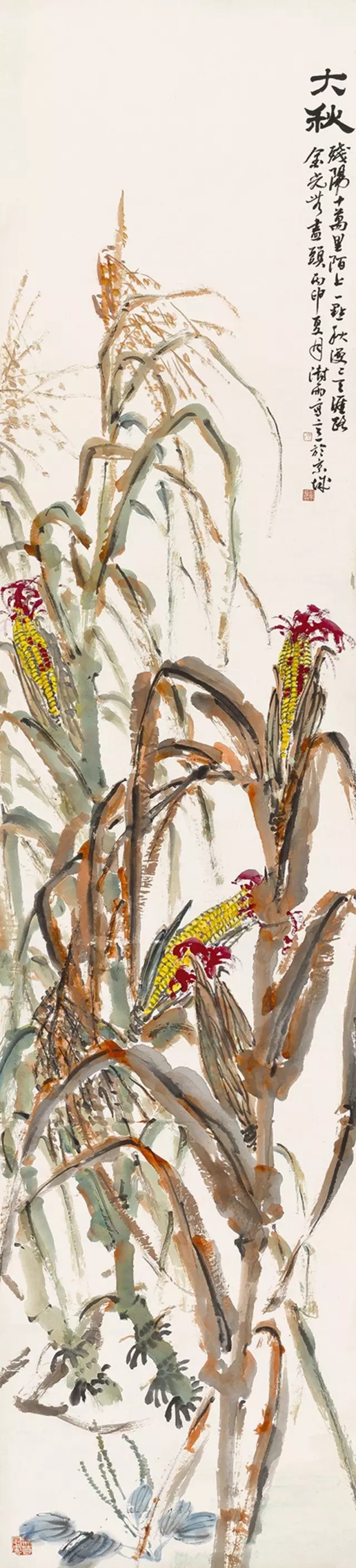 释文 :大秋。 残阳十万里,陌上一点秋。 漫漫天涯路,金光无尽头。 丙申夏月澍雨写意于京城