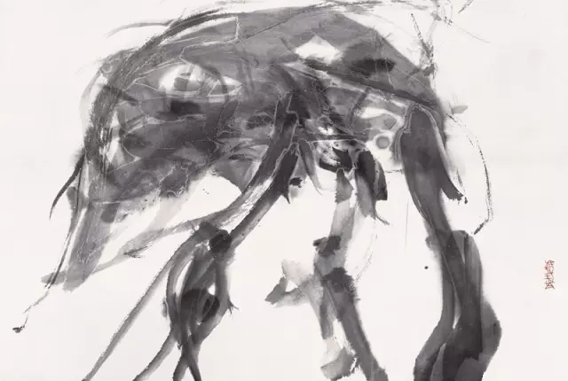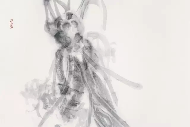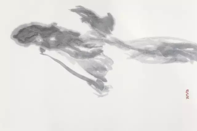 在同样采用“之间”原理的系列作品中,《山海经·前传》最令人喜爱。其实,甚至“山海经”这个标题也没有必要。在这些清新、透明、空灵而又飘逸的笔触中,水晕墨章已经拥有了艺术品独有的完满性。这一点让我想到夏皮罗论塞尚水彩画时说过的一段话。他说:“与习作一样,这些水彩画中令人神往的东西,乃是对某些场景的诱人特征所画下的最初新鲜的几笔。这几笔令我们沉浸于塞尚在对象中发现自己图画天赋的那种亲密之中;这些习作并非以最后的确定性加以绘制,但却是圆满的艺术品;从这些习作中,我们可以体悟到塞尚的专注,他微妙的犹豫和谨慎,他笔触的细腻传神,以及他各种感觉的急切尝试——而所有这些都是一颗真挚而敏锐的心灵所留下来的痕迹。”(夏皮罗:《现代艺术:19与20世纪》,沈语冰、何海译,江苏凤凰美术出版社,2015年版,第57页)